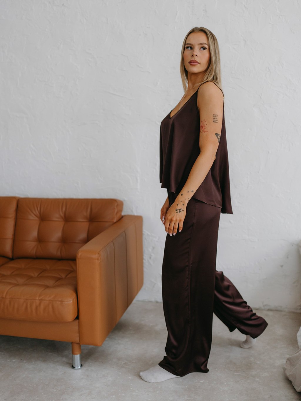 Navyše, ak dostaneš chuť niekam vyraziť, vôbec sa nemusíš prezliekať. Doplň outfit vysokými topánkami alebo vymeň FANCY Pants za nohavice či sukňu a užívaj si pyžamovú pohodu aj mimo postele.