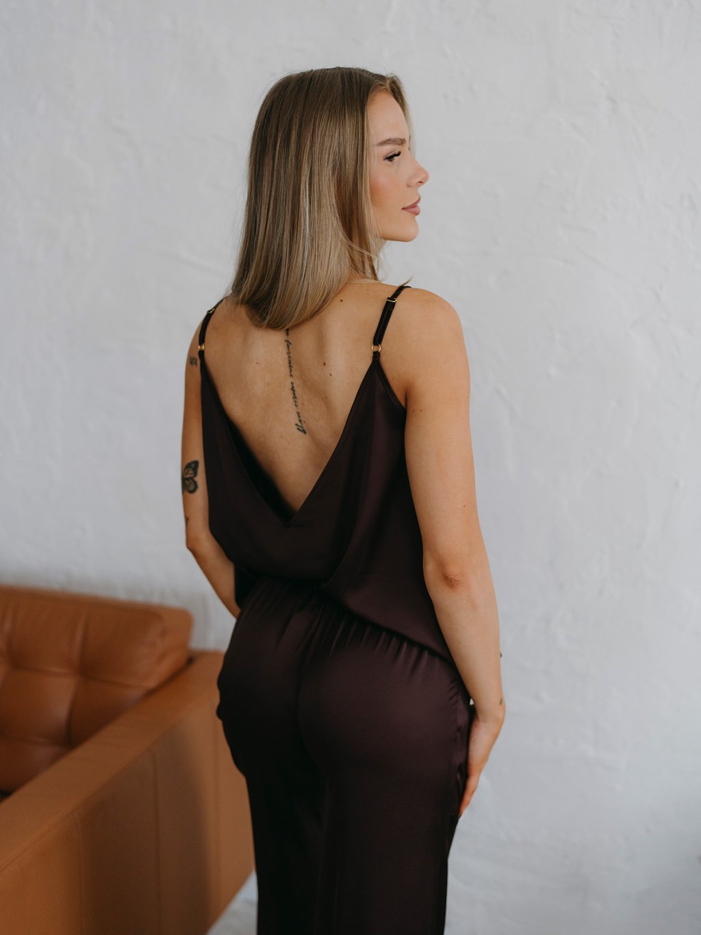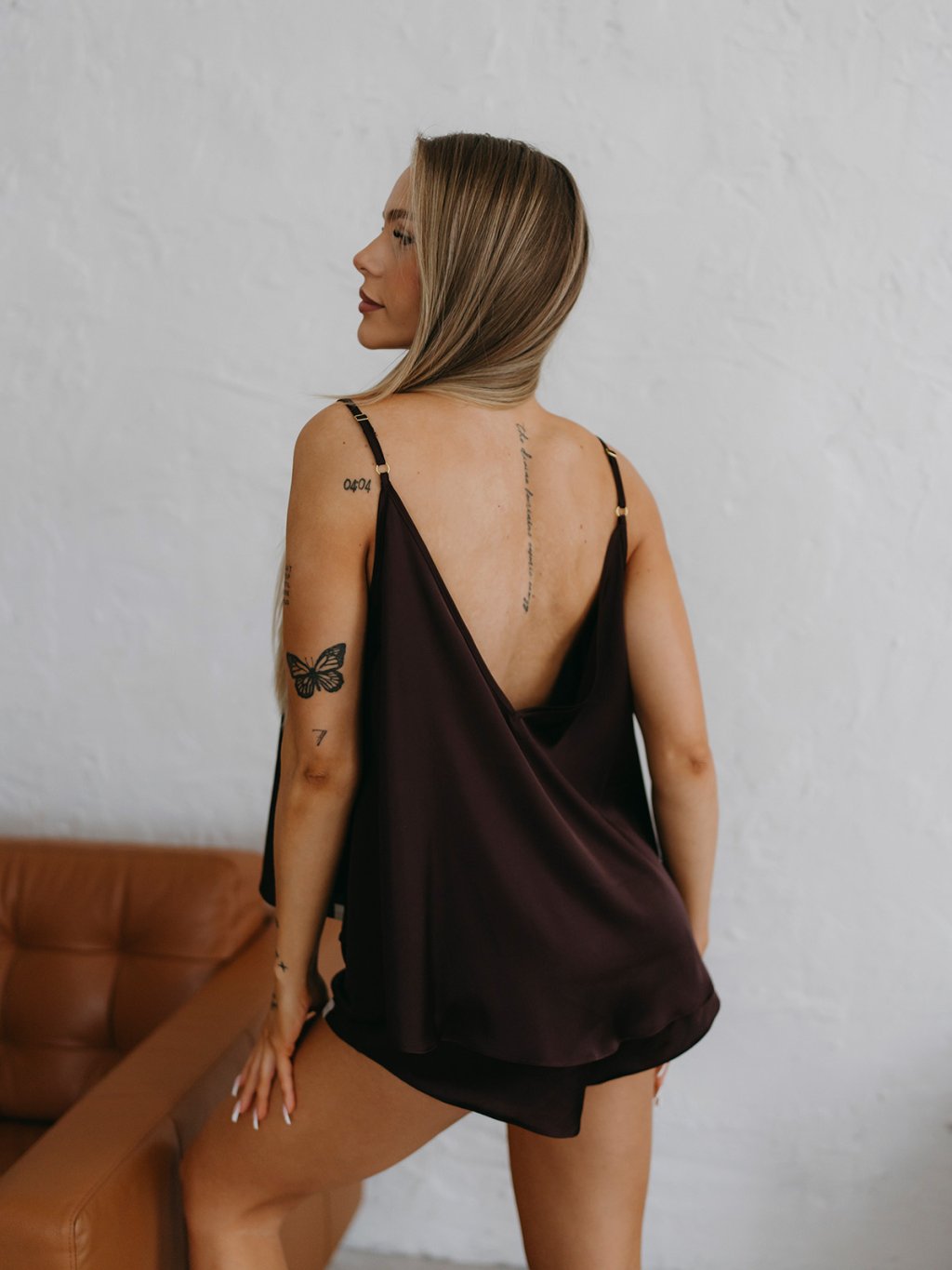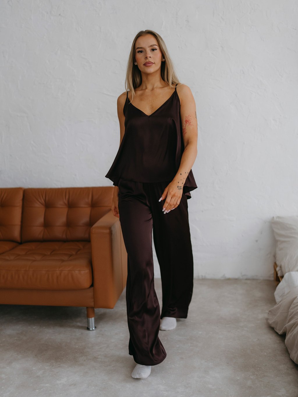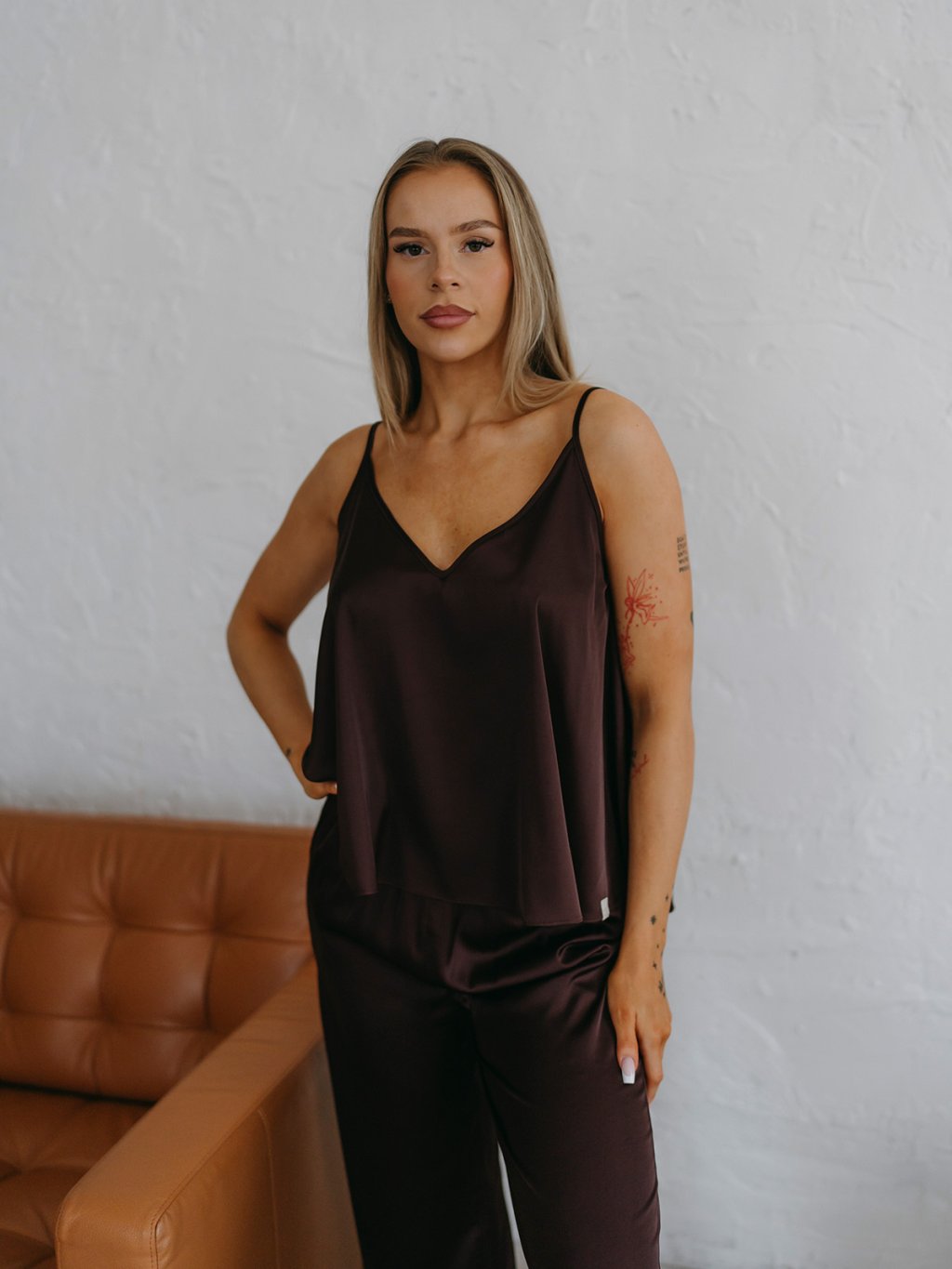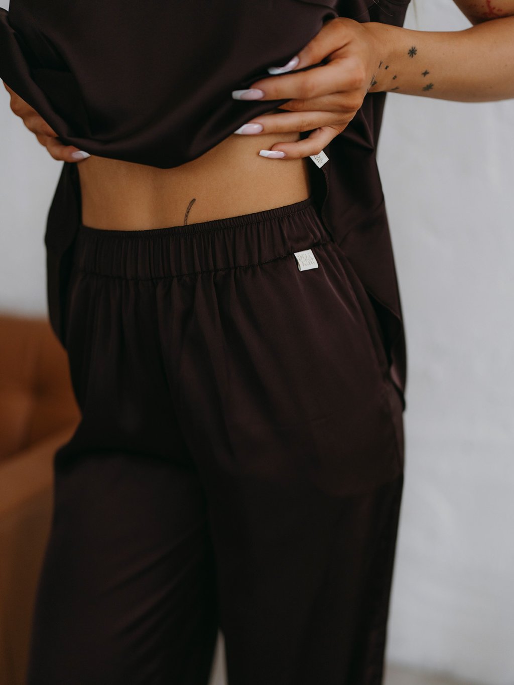 COMBO - Dámsky saténový set FAIRY - Fairy top + Pants + Shorts - CHOCCO hnedá