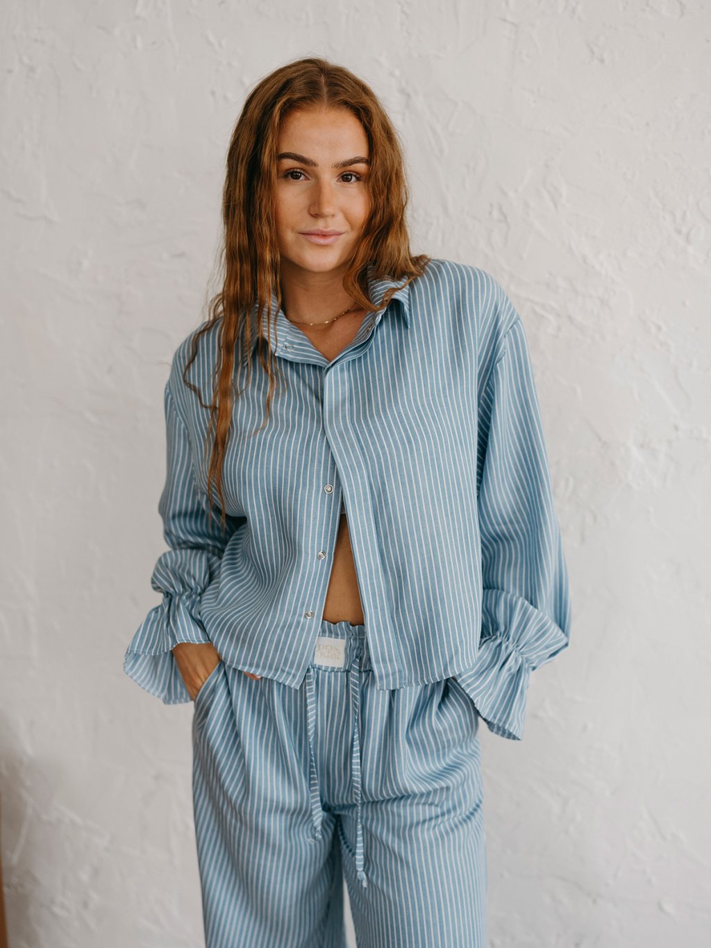 Dámska košeľa Priskini z udržateľného Lyocell materiálu je dokonalý hebký kúsok na každodenné nosenie alebo hebký spánok. Prepracovaná košeľa má voľnejší, rovný strih, rukávy s jemnou gumičkou, ktoré si môžeš vyhrnúť aj k lakťom. Zapínanie je na jemné cvoky a kratší ,,crop,, strih je predĺžený v prednej časti, aby si si mohla uviazať uzol. Aj keď nazývame košeľu CROP, nie je príliš krátka. Je komfortná v dlžke na zapravenie alebo zviazanie.