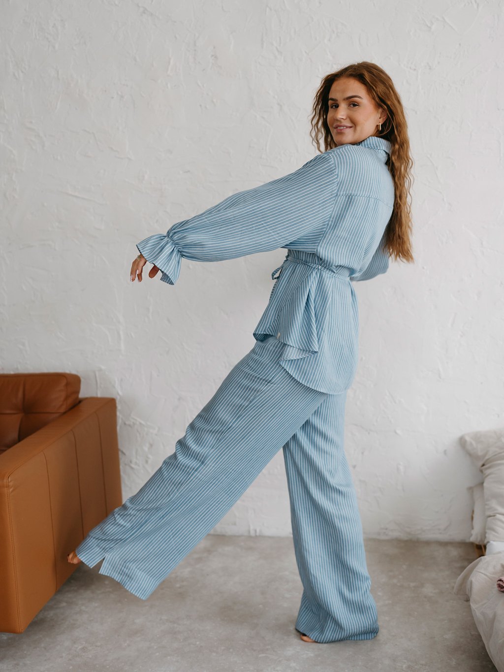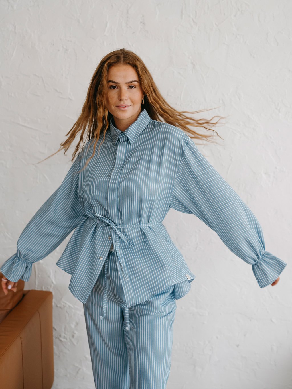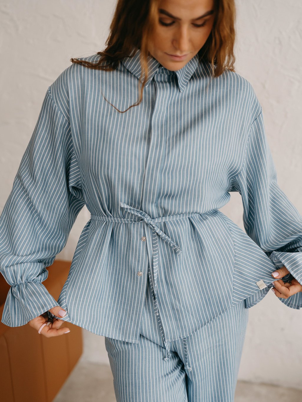 Dámska košeľa Priskini z udržateľného Lyocell materiálu je dokonalý hebký kúsok na každodenné nosenie alebo hebký spánok. Prepracovaná košeľa má voľnejší strih, rukávy s jemnou gumičkou, ktoré si môžeš vyhrnúť aj k lakťom. Zapínanie je na jemné cvoky a má tenký opasok v páse, ktorým si môžeš prispôsobiť tvar košele podľa tvojho priania.
