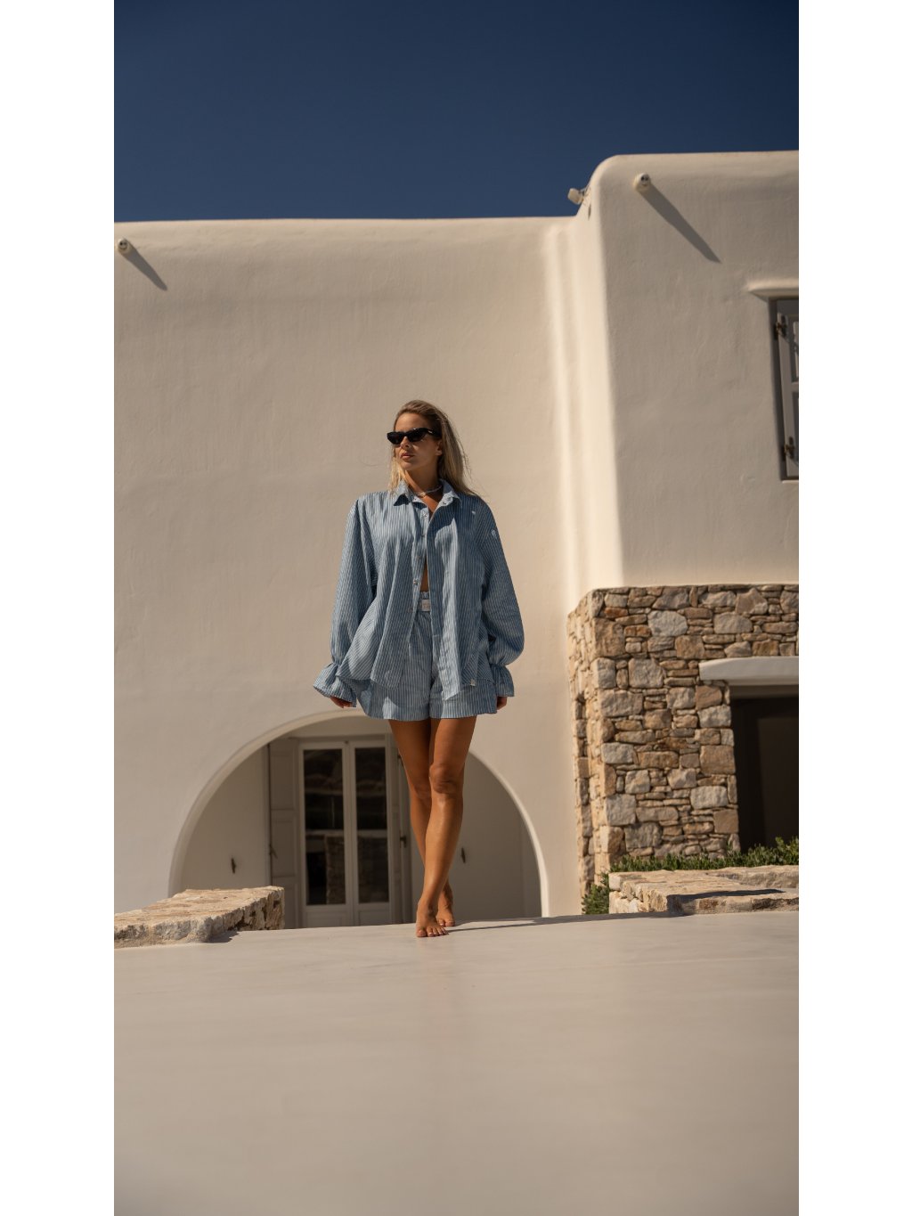 Tenký opasok je súčasťou košele. Veľkosť košele je XS/S alebo M/L. Má voľnejší strih, tvar košele vieš prispôsobiť uviazaním tenkého opasku v páse alebo zviazaním košele na uzol.