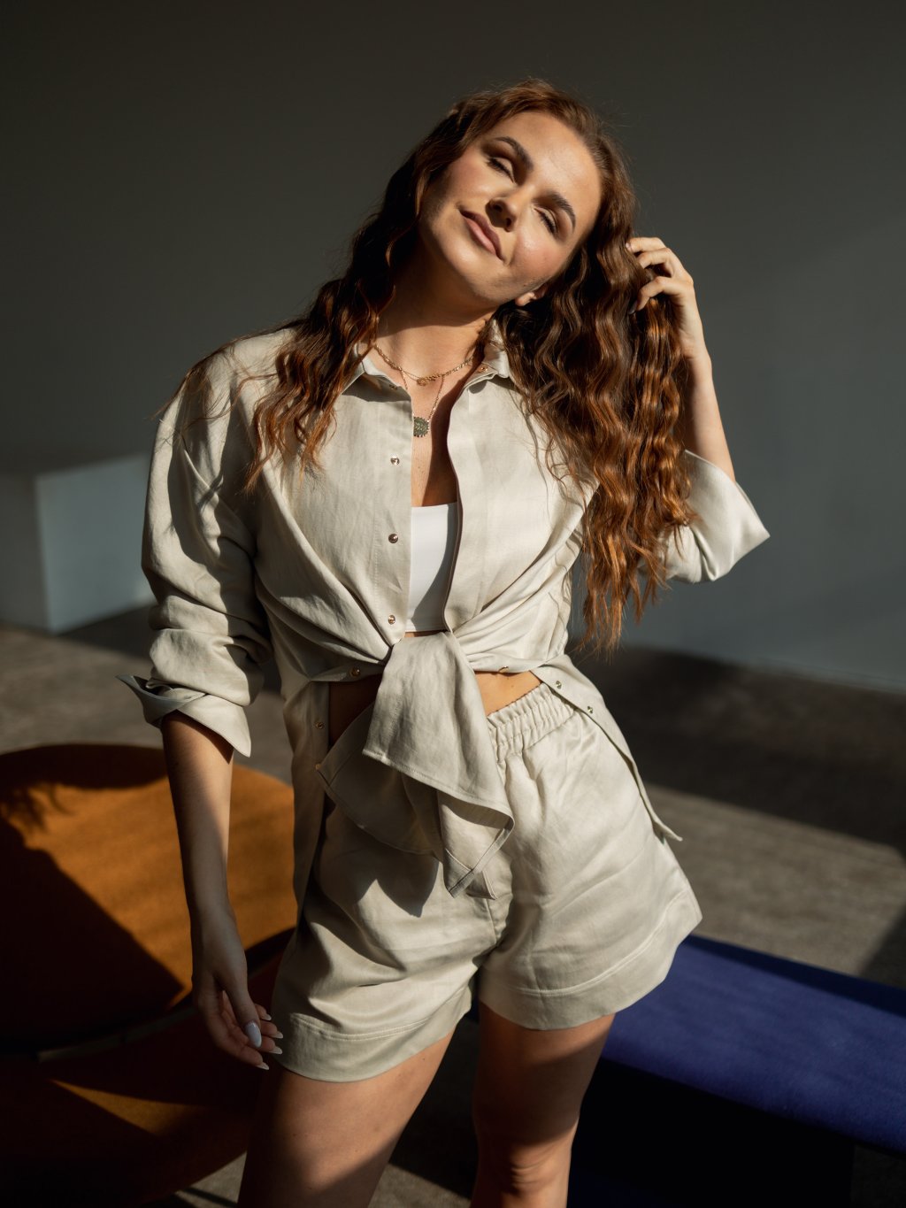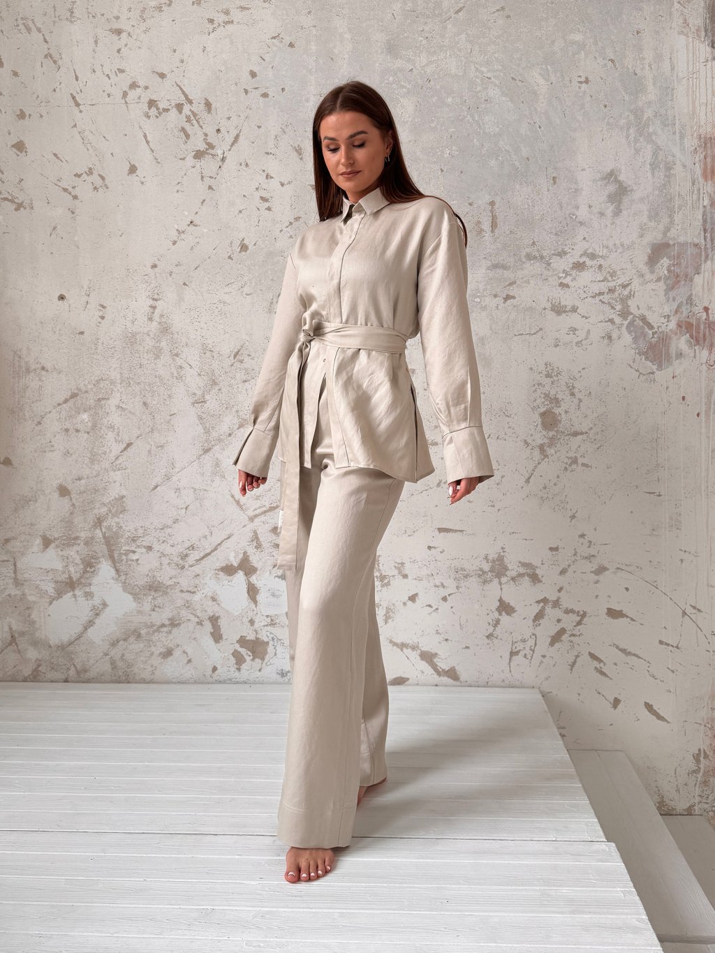 Svojimi skvelými vlastnosťami (Tenclu a Ľanu) ti zaručí pociť ľahkosti aj v lete počas horúčav. Na tkanine sa môže vyskytnúť kúsok zatkaného ľanu.