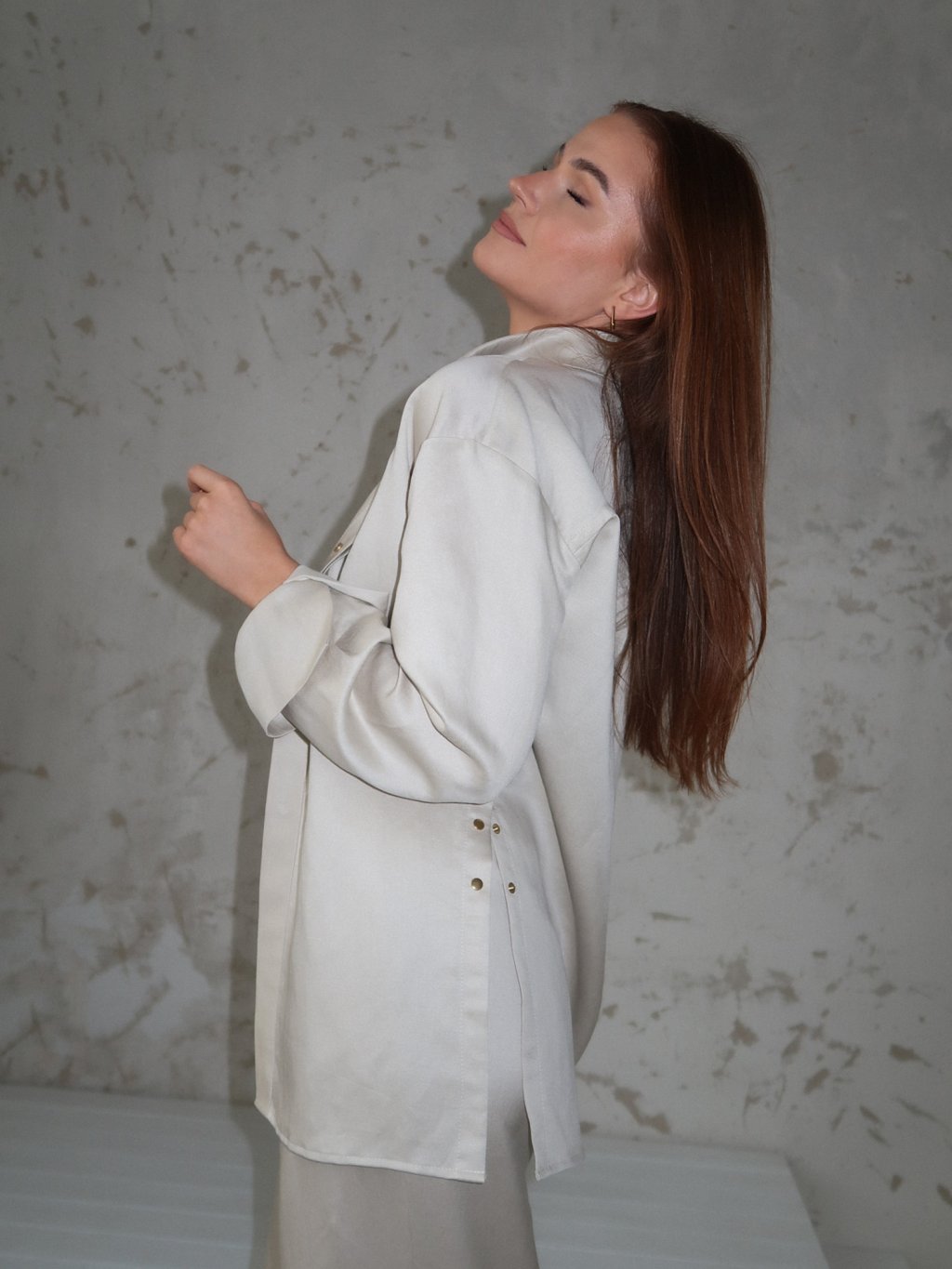 Veľkosť košieľ je podľa konfekčných veľkostí, XS, S, M, L/XL. Košele majú jemný oversize strih, aby sa dali lepšie stylovať.