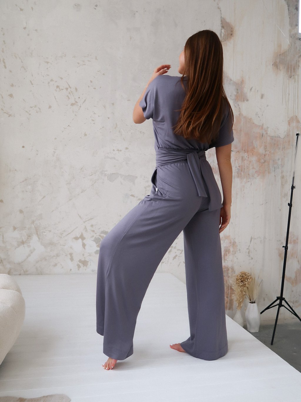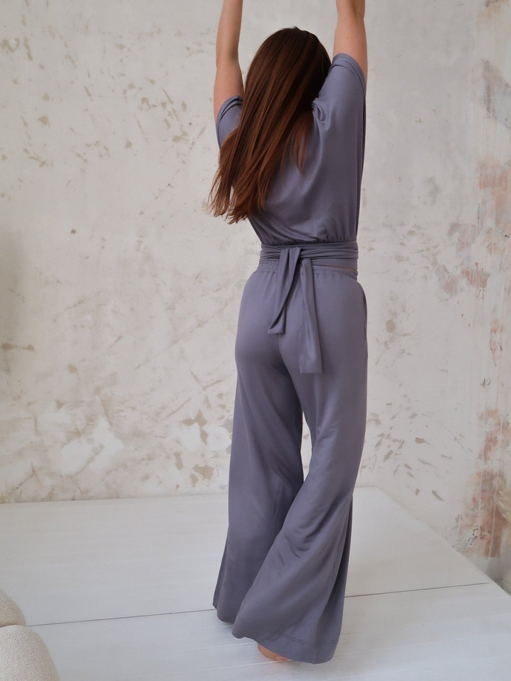 Nohavice majú voľný, široký strih jemnú, prešitú gumu a v bokoch vrecká.