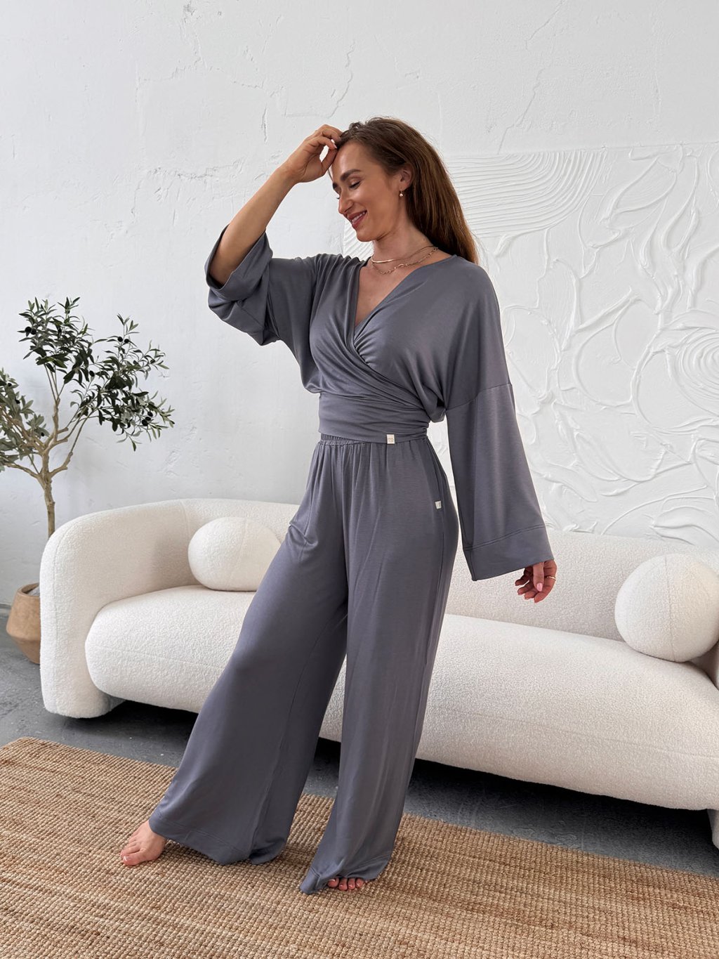 Dámske Ecovero nohavice FANCY FLOWY - sivá