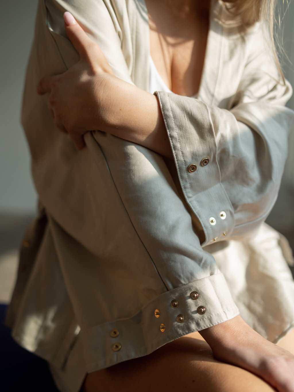 Jemná léga štýlový opasok a široké rukávy - ktoré pomocou cvokov môžeš ľubovoľne upravovať. Nechaj ich rozopnuté a rukáv bude široký s detailami cvokov. Spoj cvoky a vytvor rukáv na viacero šírok presne tak, ako budeš k tvojmu štýlu / outfitu potrebovať.
