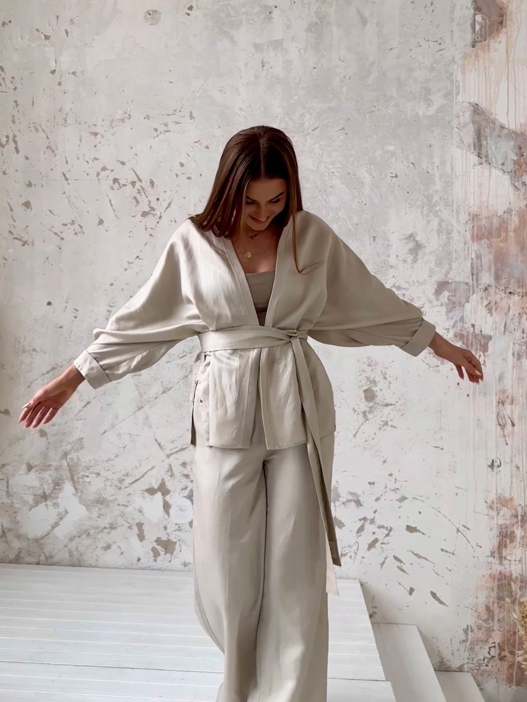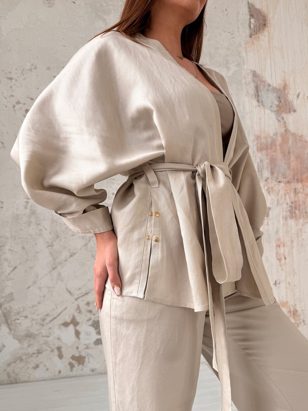Kombinuj toto kimono s Tencel - Linen košeľou alebo Crop košeľou a vytvor tak zaujímavé stylingy. Inšpirácie nájdeš v galérii alebo na našom instagrame @priskini.sk