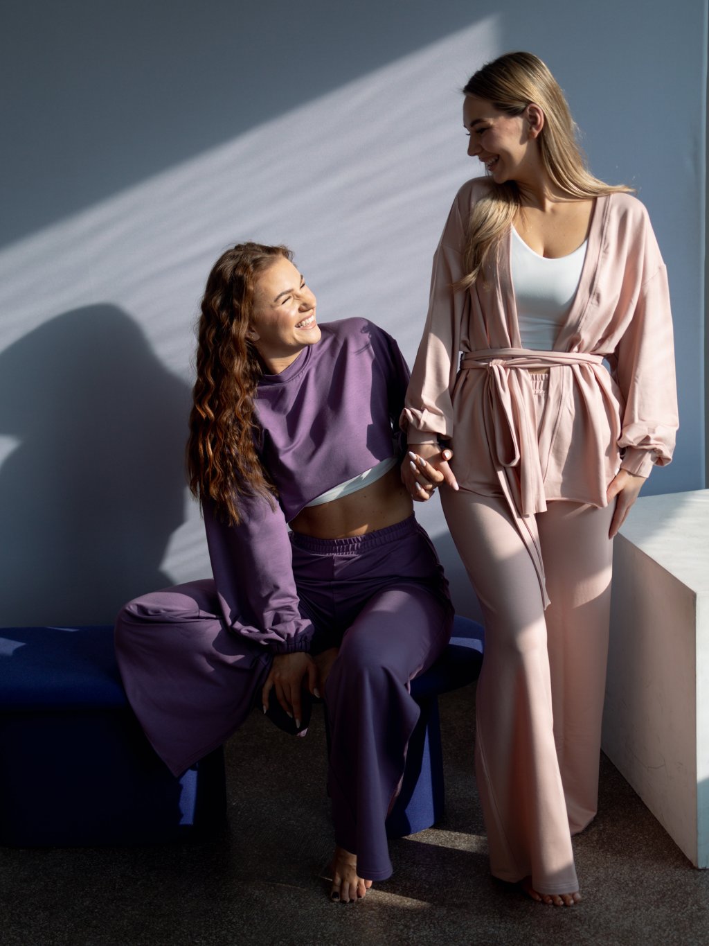 | Veľkosť modelu: | Modelka je vysoká 165 cm a má veľkosť M. (Tepláky sú šité na výšku 170cm) |