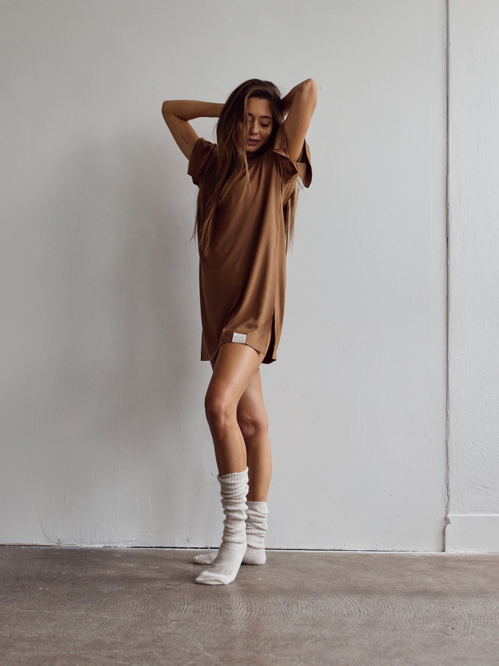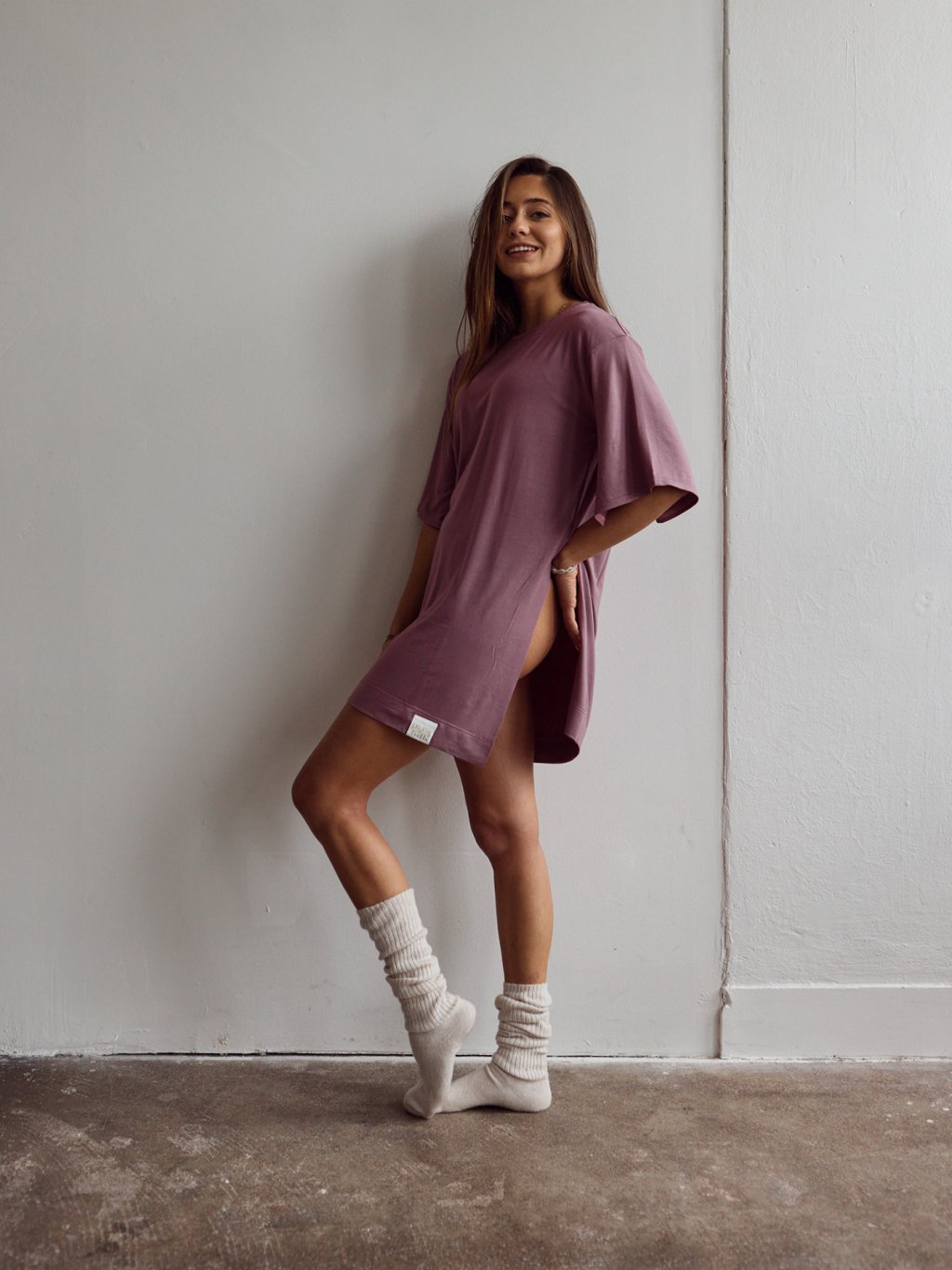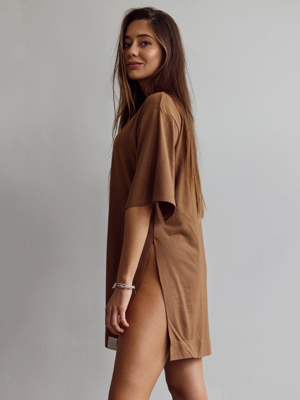 Priskini ELLE TENCEL Long Top je nie len pyžamo! Je to skvelé multifunkčné tričko / top, ktorý môžes nosiť voľne padnutý a jeho voľnosti dopomáhajú rozparky na rukávoch aj bokoch. Keďže je predĺžený, môžeš ho nosiť aj ako dlhšiu košeľu spolu so spodným prádlom a kraťaskami. Ak ho chceš nosiť aj bežne počas dňa, pokojne ho skombinuj aj s Elle Tencel pants / nohavicami :)