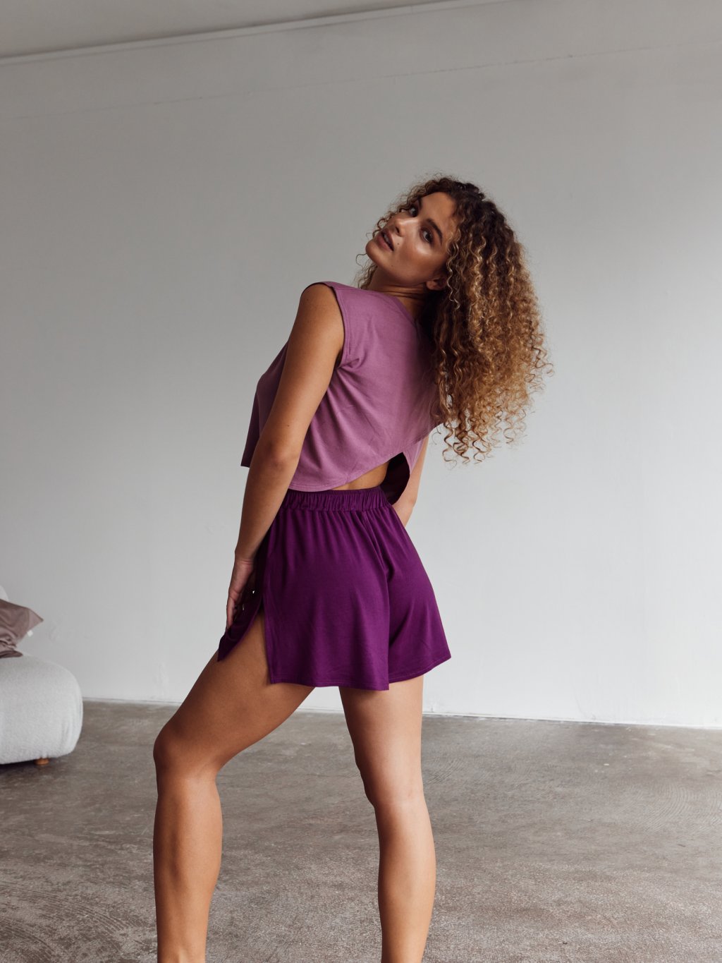 Priskini pyžamo FANCY TENCEL set obsahuje top, ktorý opäť môžeš nosiť obojstranne presne tak, ako sa ti to bude páčiť alebo akú budeš mať náladu. Ak chceš jemne poodhaliť bruško a byť sexi, obleč si preloženú stranu topu dopredu. Zadná časť ti naopak pekne zakryje celý chrbát. Ak nechceš byť vyzývavejšia, ale naopak zakryť svoje prsia a bruško, otoč top a jemne poodhalíš len chrbát.
