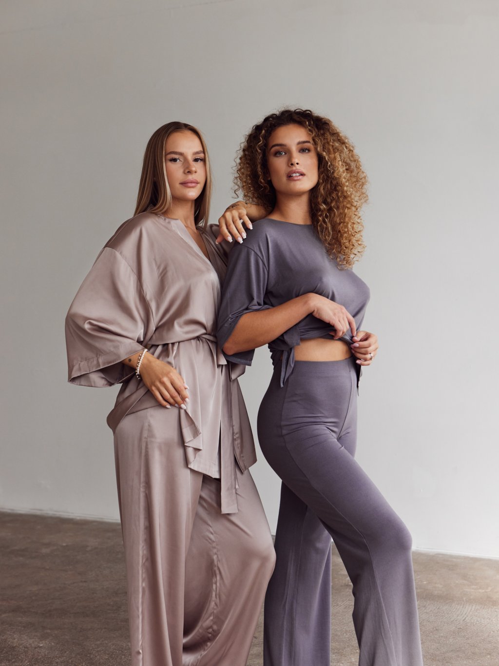 Priskini Lavish Simple Kimono/ župan, má strih kúsok pod zadok a po bokoch má jemné rozparky. Široké midi rukávy krásne padajú a previazať ho vieš extra dlhým pásom, ktorý môžes obmotať dvakrát okolo seba alebo ho nechať voľne visieť.