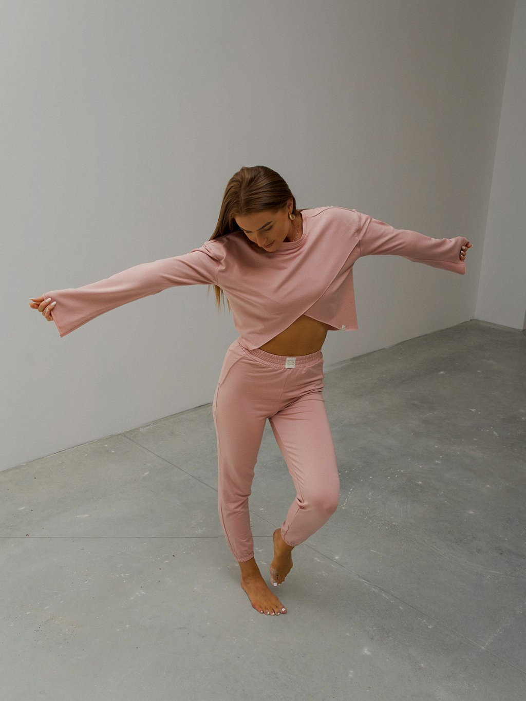 Dámske tepláky Tencel DAY JOGGs - púdrová ružová