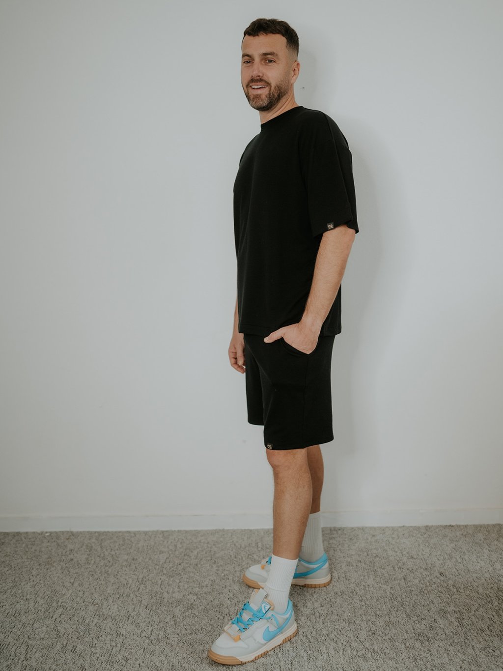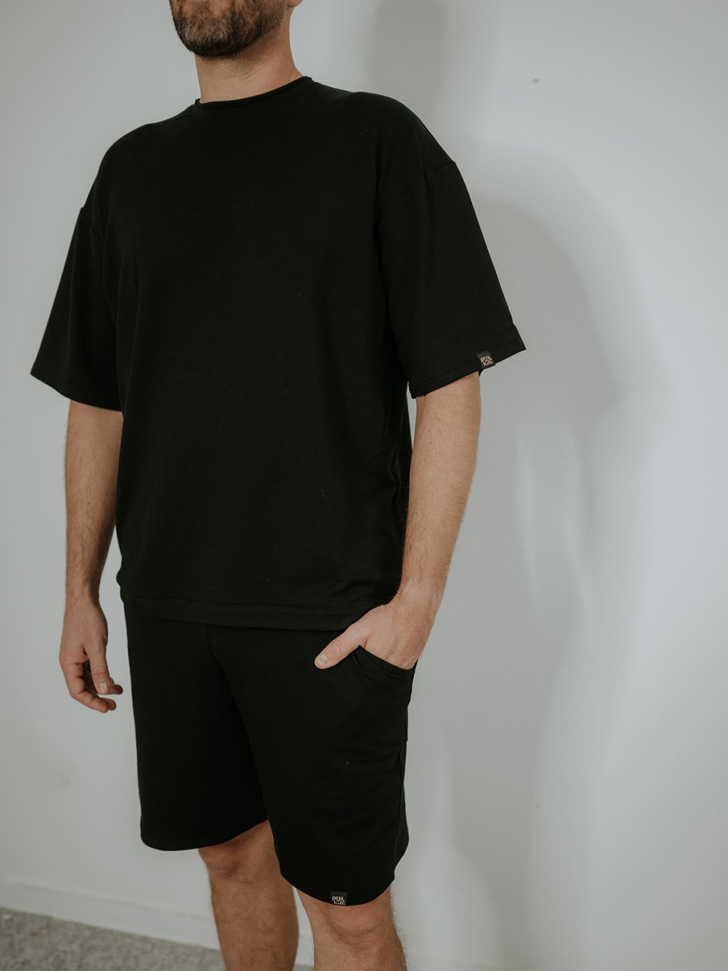 Pánske kraťasy s vreckami, voľného strihu s hrubšou gumou z tenšej Tencel teplákoviny sú dokonalé na celodenné nosenie.